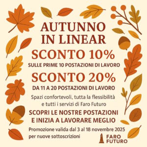 Autunno in Linear – Promo Sconto del 10% * sulle prime 10 postazioni di lavoro. Sconto del 20% * da 11 a 20 postazioni di lavoro. Postazioni LINEAR – spazi…